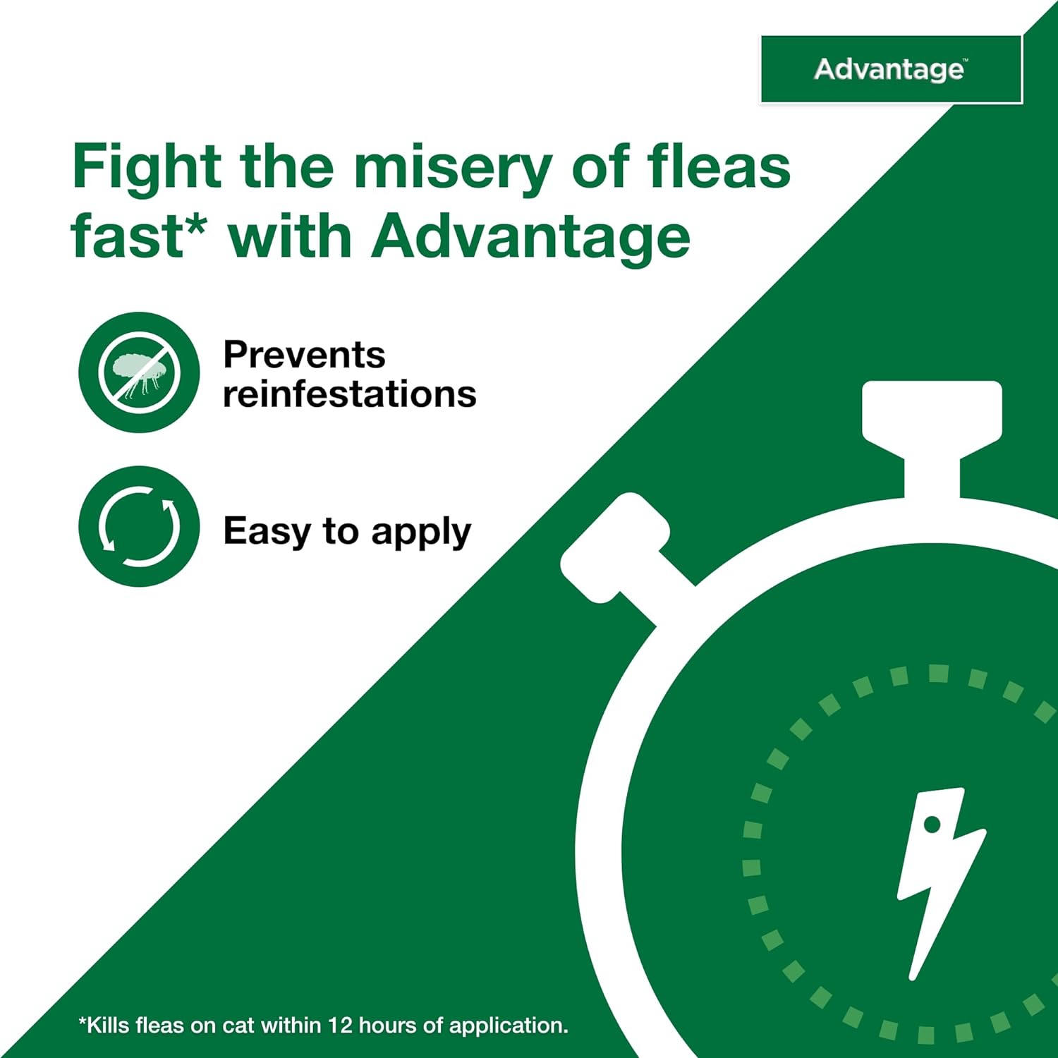 Kills fleas within 12 hours of initial application.