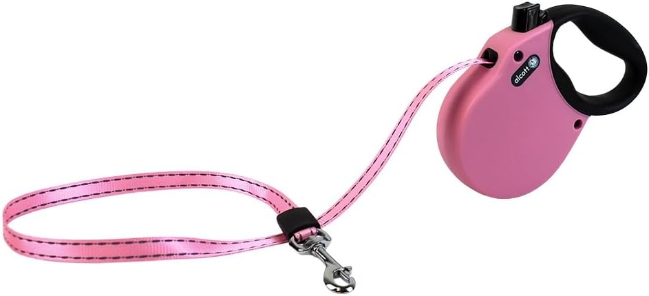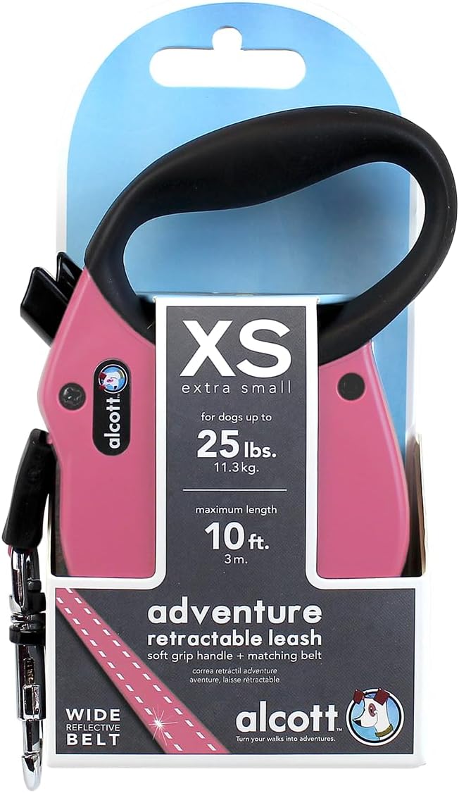 Alcott Adventure Retractable Reflective Belt Leash for Dogs, 10' Long, XS Pink