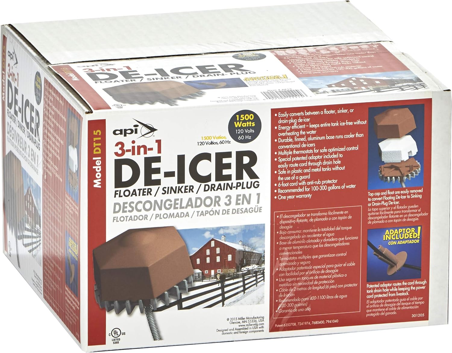 API 3-in-1 De-Icer 1500W Floating Sinking Drain Plug Stock Tank Heater 100–300gal