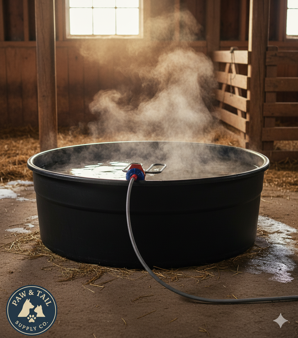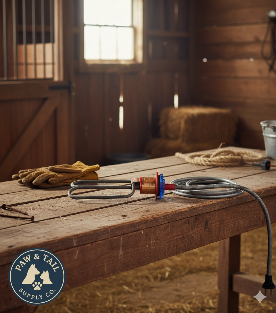 API Stock Tank Drain Plug De-Icer 1500W mounts in a 3/4" or larger drain hole to keep the element away from livestock. Stainless steel, thermostatically controlled with thermal feedback and over-temp protection. For 100–300 gal plastic or metal tanks. 6 ft anti-rub cord. Made in USA, cULus Listed.