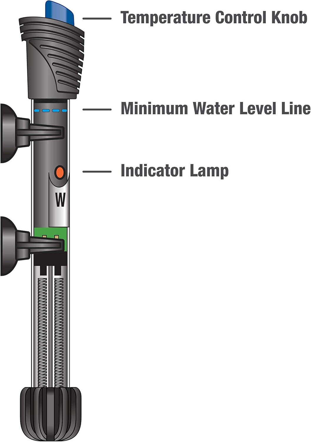 Aqueon Submersible Aquarium Heaters are made from thermal shatter-resistant quartz glass and designed to absorb impacts, making them extremely durable. An electronic thermostat stops heating once set temperature is reached.