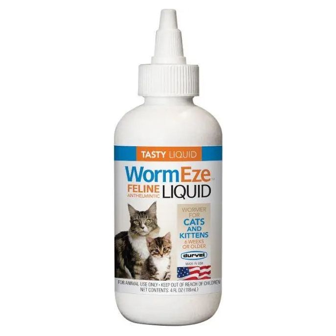 Wormeze Directions for use: Administer one full teaspoonful (5 mL) per 5 lbs. of body weight. Apply into cat's mouth or mix into food or water. Repeat treatment in 10 days after first treatment.