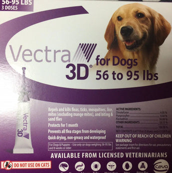 Vectra 3D Topical Spot on Flea & Tick Remedy Dogs 56-95 lbs. 3CT