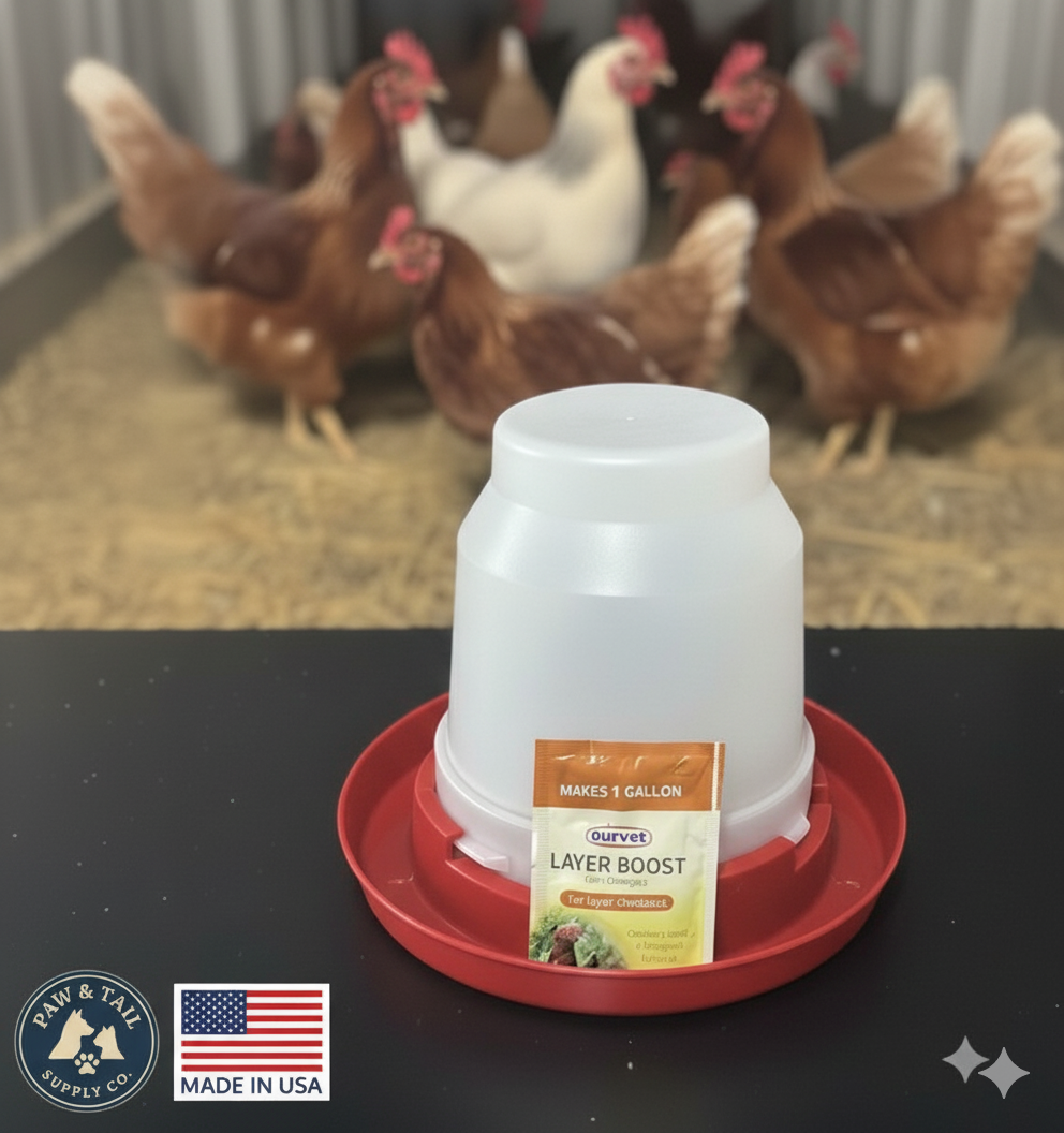 Little Giant 1 Gal Poultry Nesting Jug Base Red Waterer + Layer Boost Combo