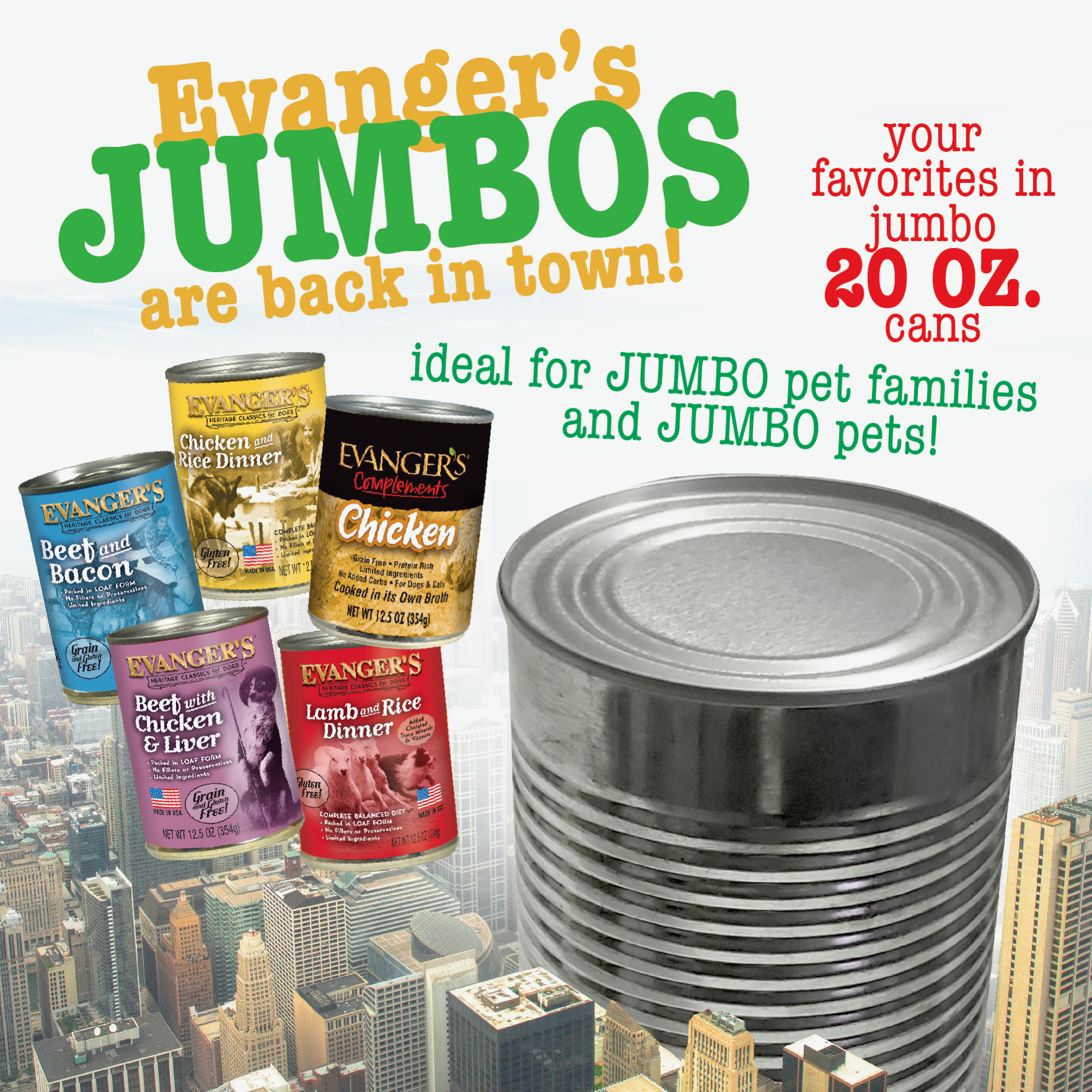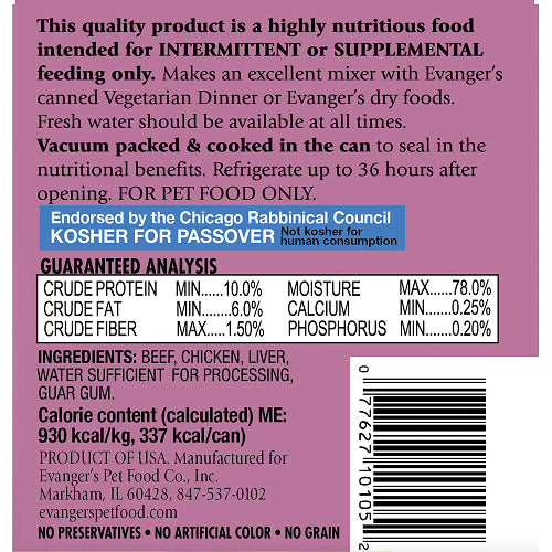 Evanger's Heritage Classic Beef Chicken & Liver Dog Food 20.2oz Jumbo Size 12PCK