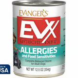 EVX Restricted Diet 12.5 oz for dogs with allergies & food sensitivities. Limited ingredient, grain-free, pea-free with novel proteins, prebiotics & postbiotics. Complete & balanced AAFCO formula; no preservatives or fillers.