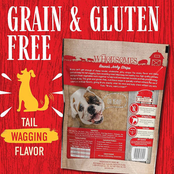Wholesomes Bruno's Jerky Strips 25oz. Grain-Free Pork Dog Treats USA Made