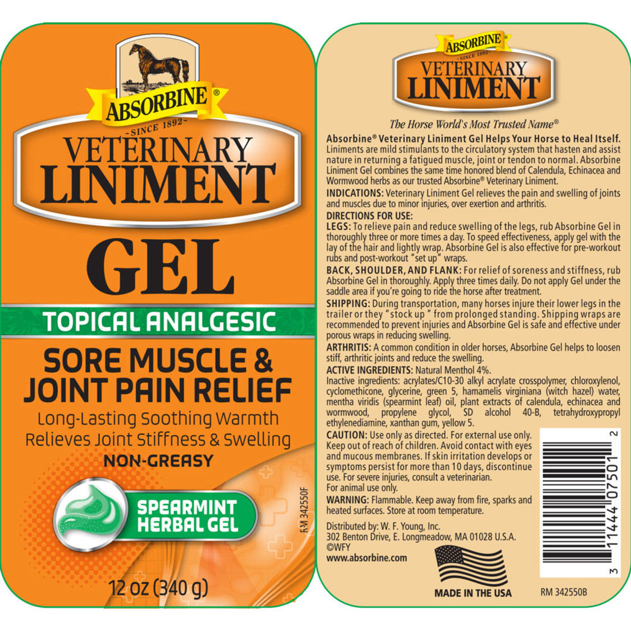 Absorbine Horse Veterinary Liniment Gel Muscle Joint Arthritis Pain Relief 12 oz.