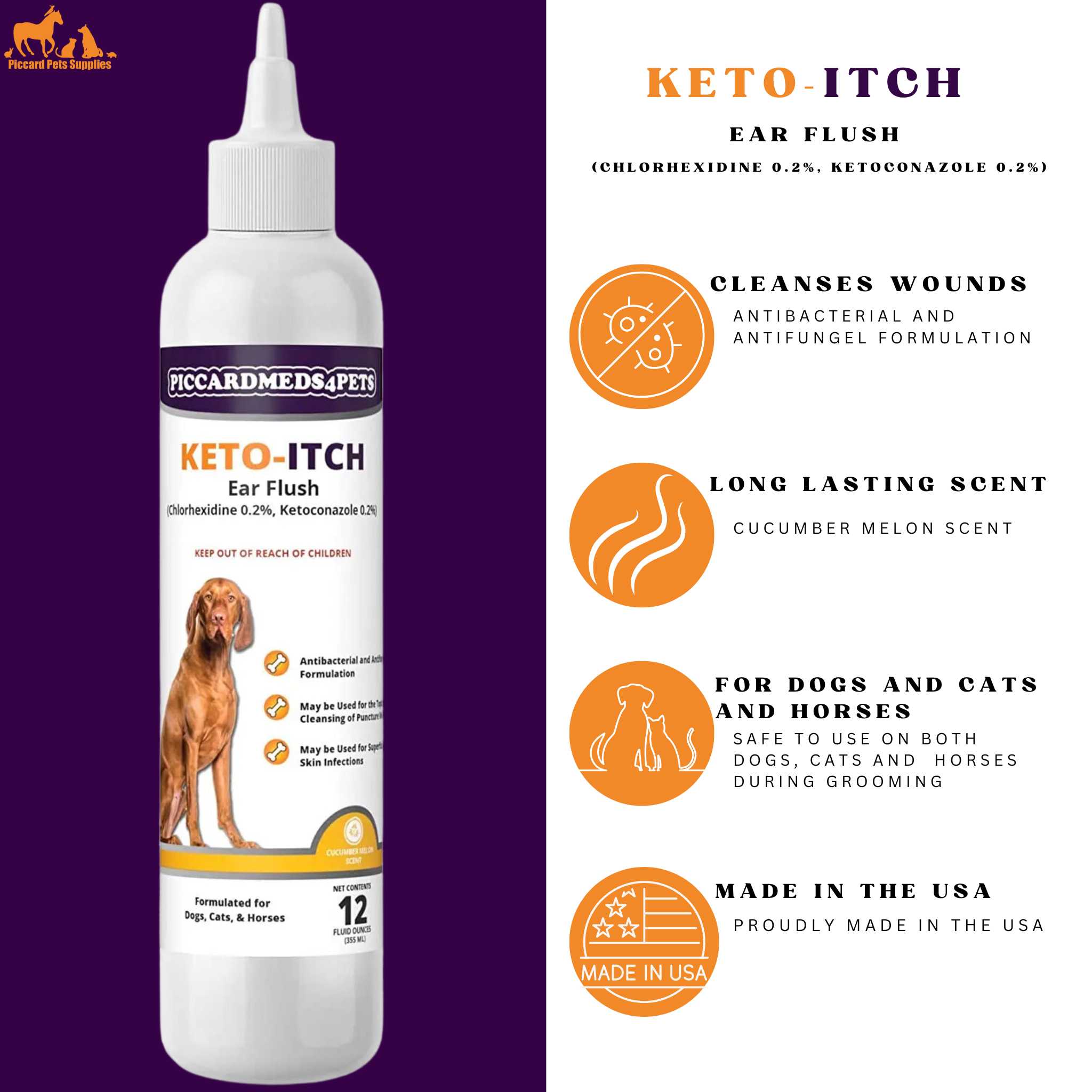 Piccardmeds4pets Keto-Itch Plus Ear Flush Plus for Dogs and Cats 12oz.