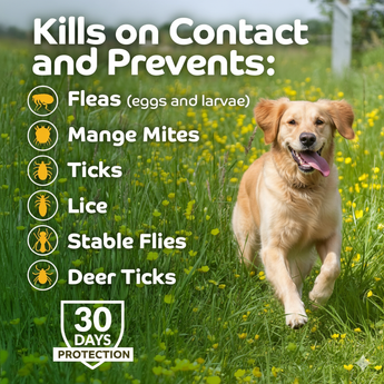 • Controls fleas, ticks, lice, mange mites & stable flies