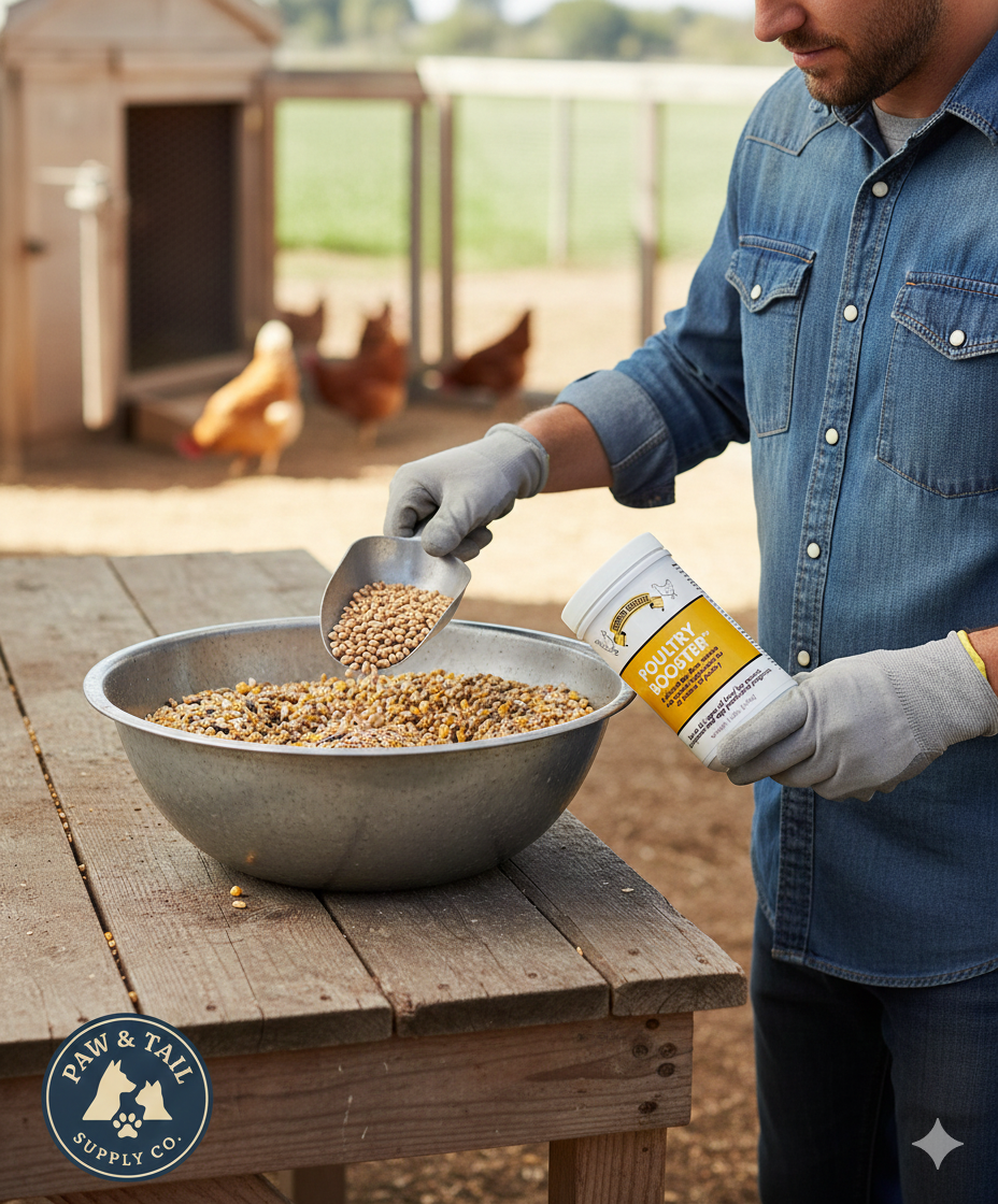 - Easy to mix with feed; scoop included