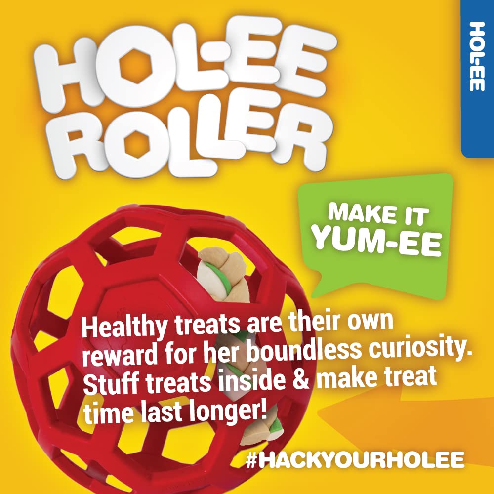 The Hol-ee Roller's durable, super-stretchy rubber makes it easy to stuff your dogs' favorite treats inside, while the patented, open design allows dogs to safely breathe through the toy for hours of play.
