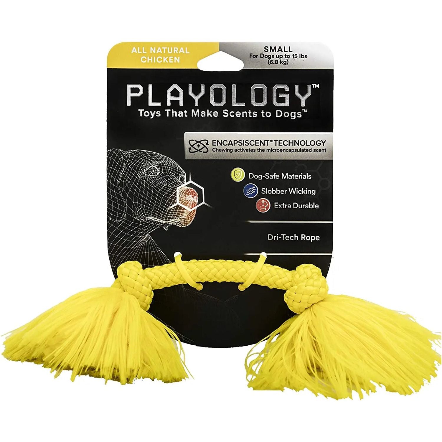 Playology Dri-Tech Rope Dog Toy All Natural Chicken Scent, Small