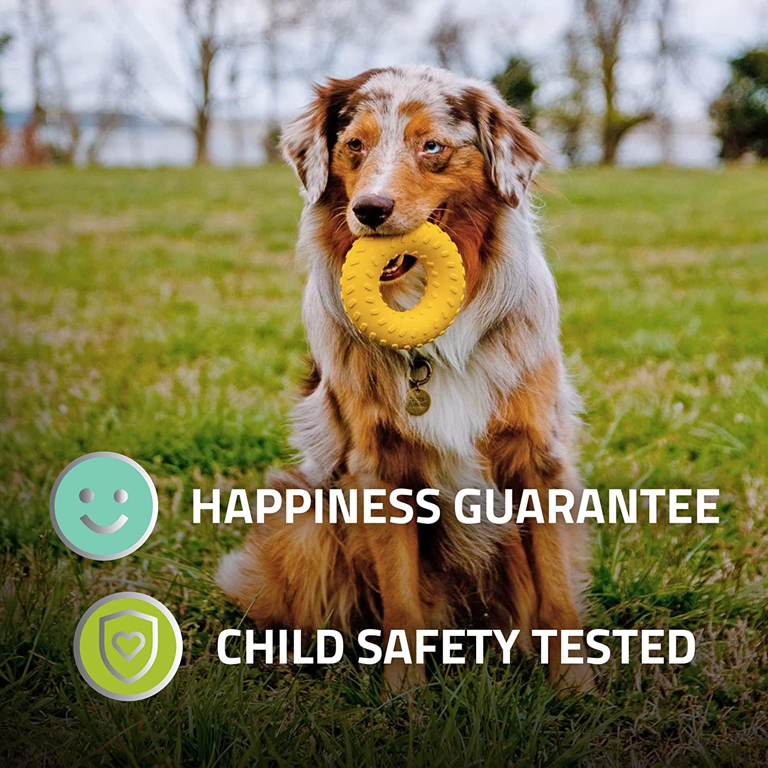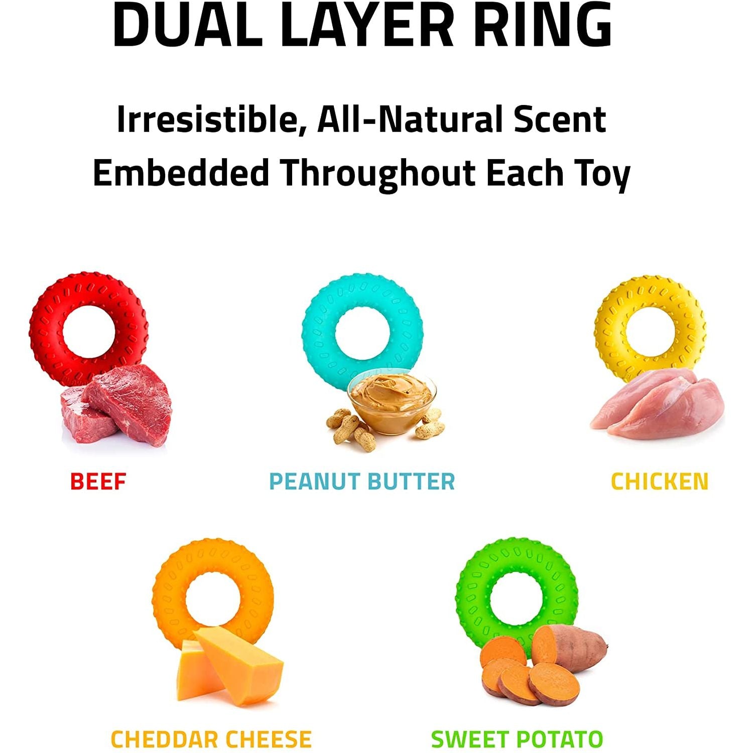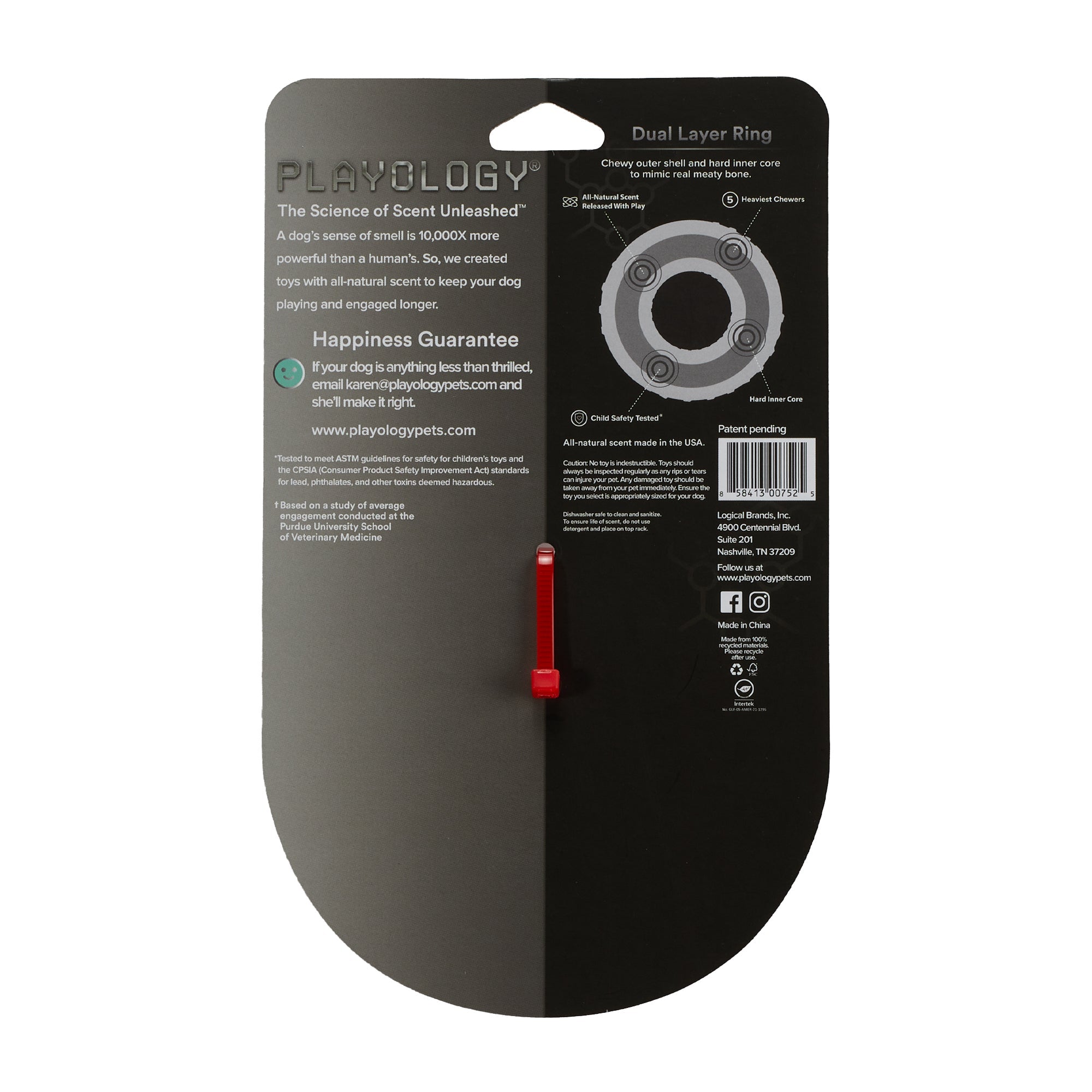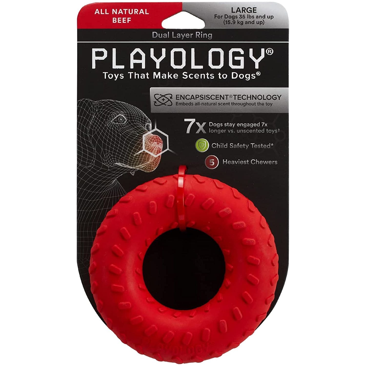 PLAYOLOGY Dual Layer Ring Dog Toy scented with exclusive Encapsiscent Technology. Each toy is infused with an all-natural beef scent, made with extra durable dog-safe materials, and engineered for longer-lasting play.