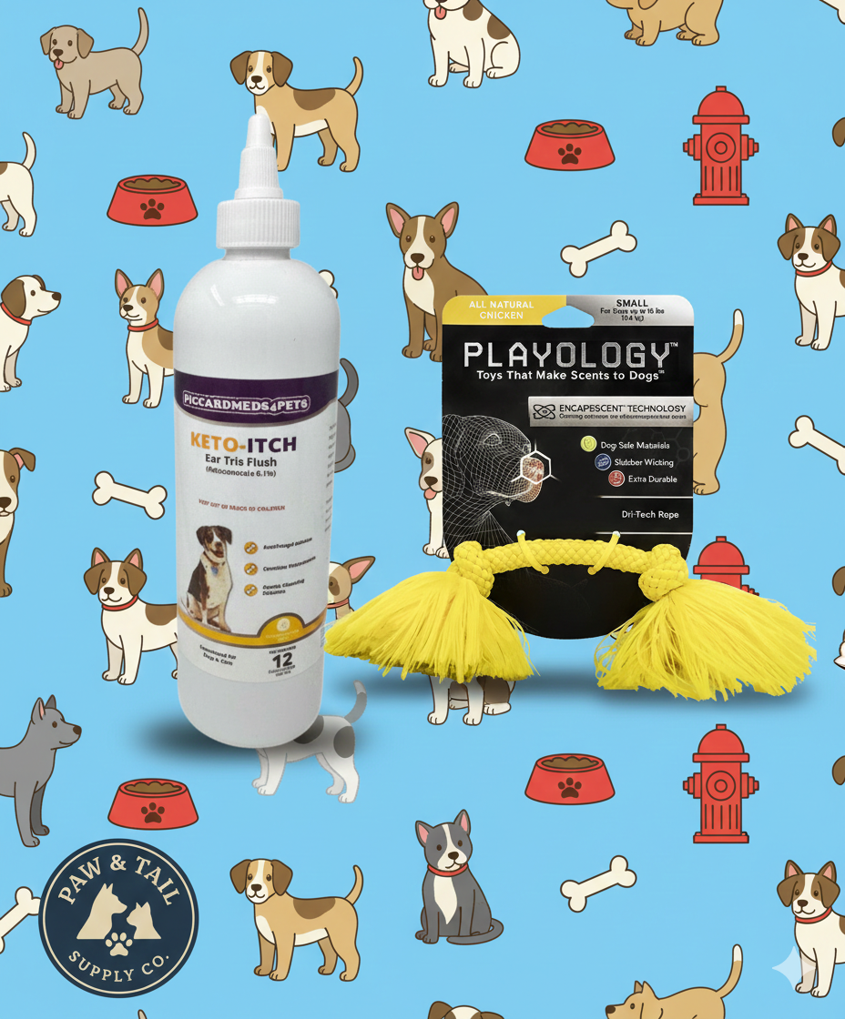 - Combo: Keto-Itch antifungal ear flush 12oz + Playology Dri-Tech rope toy