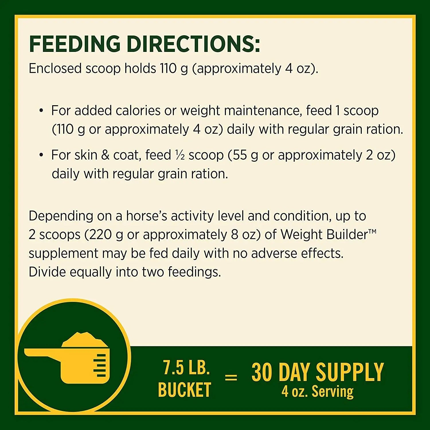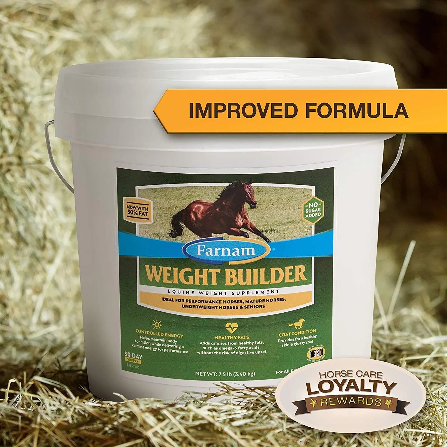 Farnam weight builder concentrated high calorie is designed to help your horse maintain and enhance their body condition as you spare precious glycogen stores. Traditionally, horses needing more calories for increased stamina were fed more grain.
