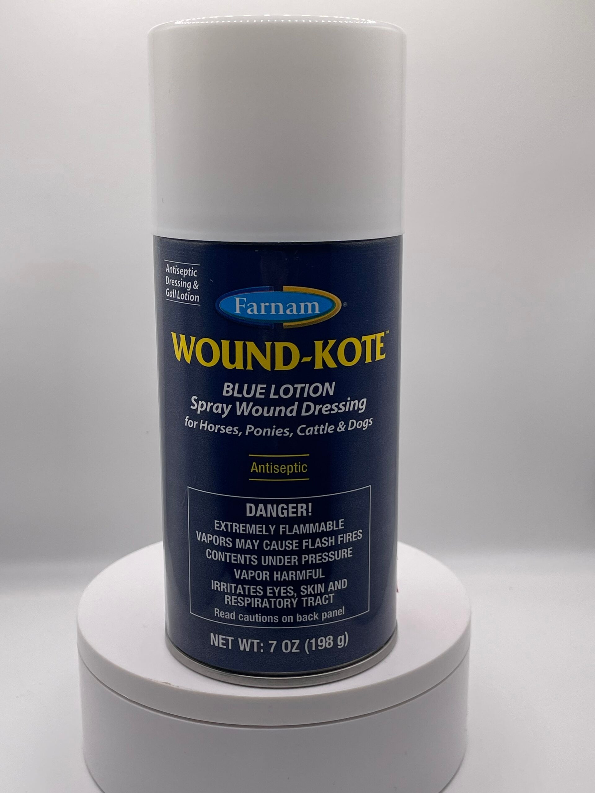 ​Farnam Wound-Kote Blue Lotion Spray is a specially formulated antiseptic and germicidal wound dressing and gall lotion for horses, ponies, cattle and dogs.