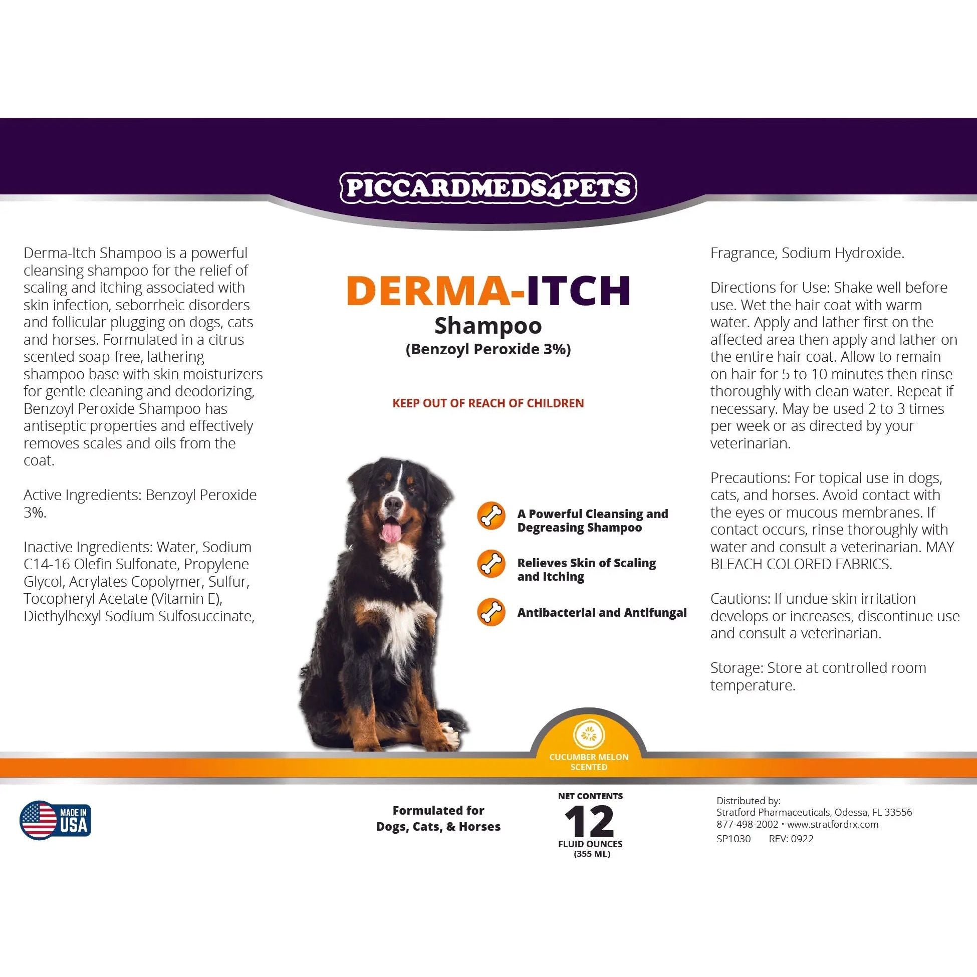 Combat greasy skin conditions with Piccardmeds4pets Derma-Itch Shampoo featuring 3% benzoyl peroxide. This veterinarian-formulated solution deeply cleanses oily skin, fights follicular flushing, and deodorizes while hydrating, plus includes a FREE camo bandana.