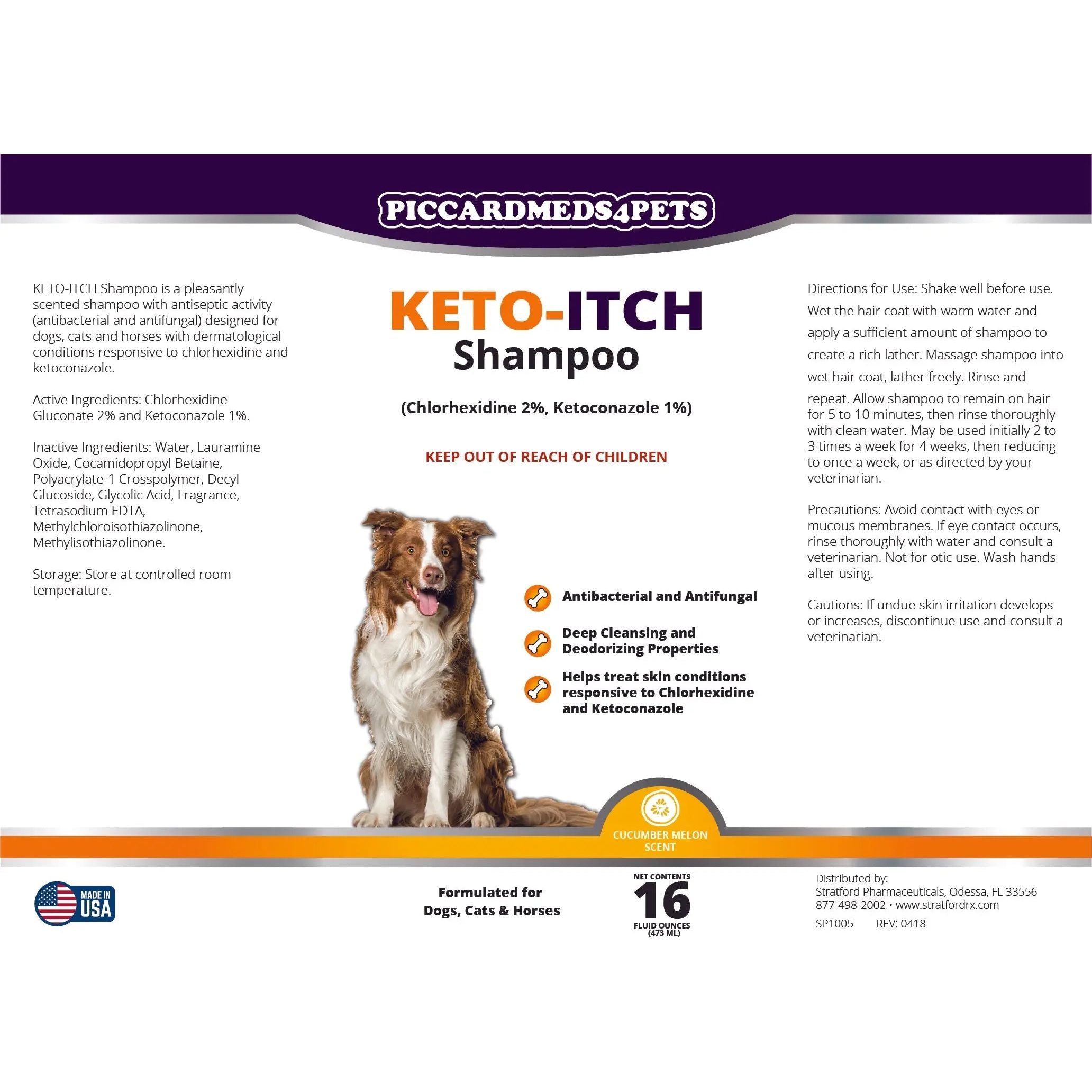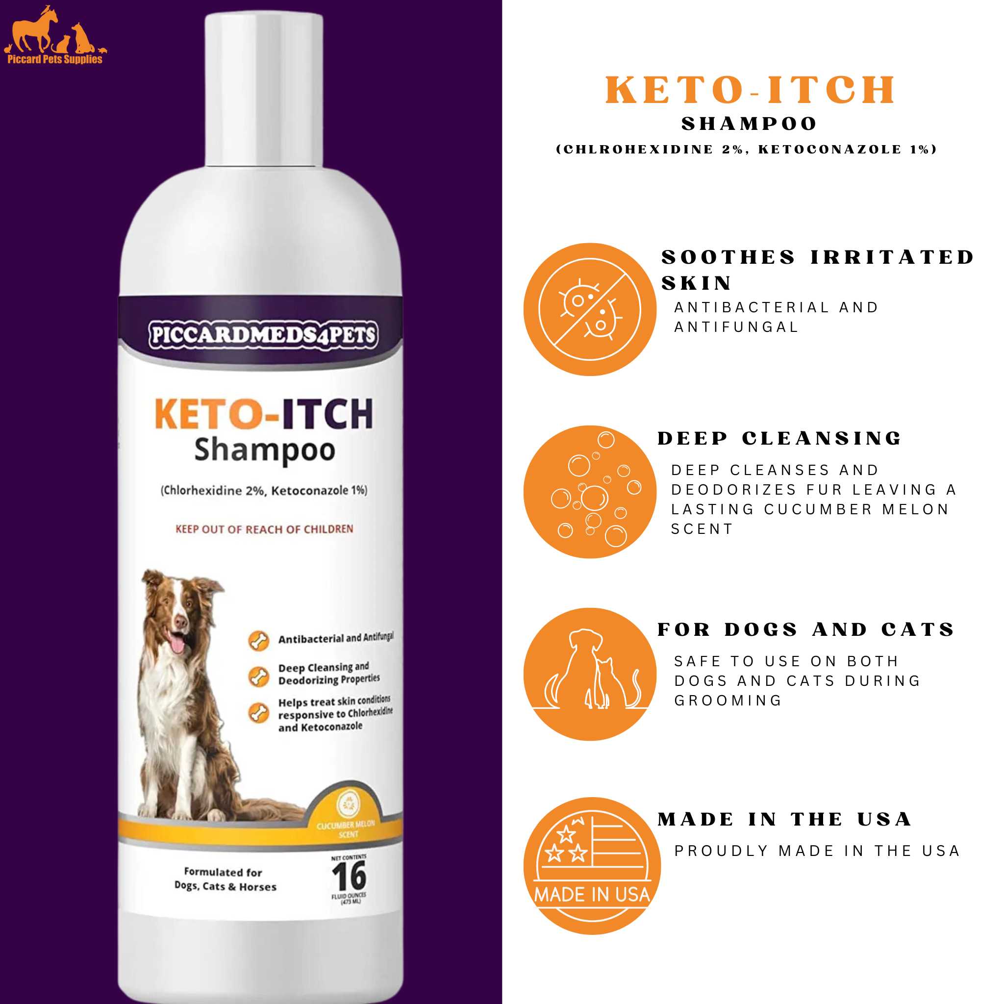 Combat common skin irritations with Piccardmeds4pets Keto-Itch Relief Medicated Shampoo. This veterinarian-formulated solution treats ringworm, hot spots, and itching with refreshing cucumber melon scent and oatmeal enrichment, plus includes a FREE patriotic bandana.