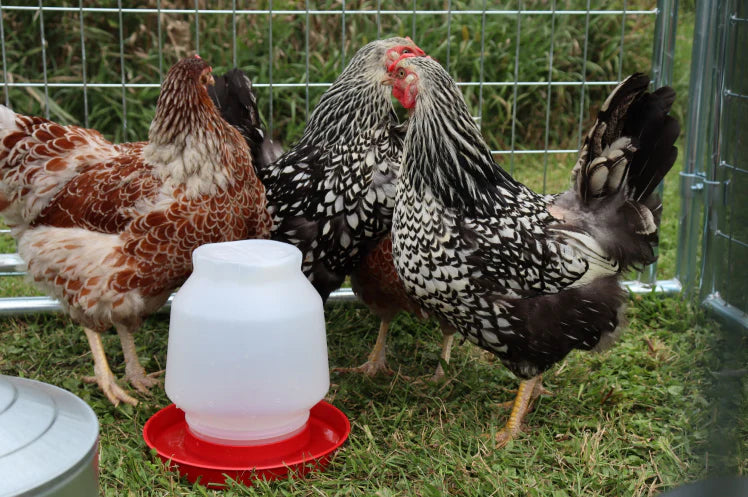This watering ring is designed to combine with waterer jar to make a gravity-feed waterer.