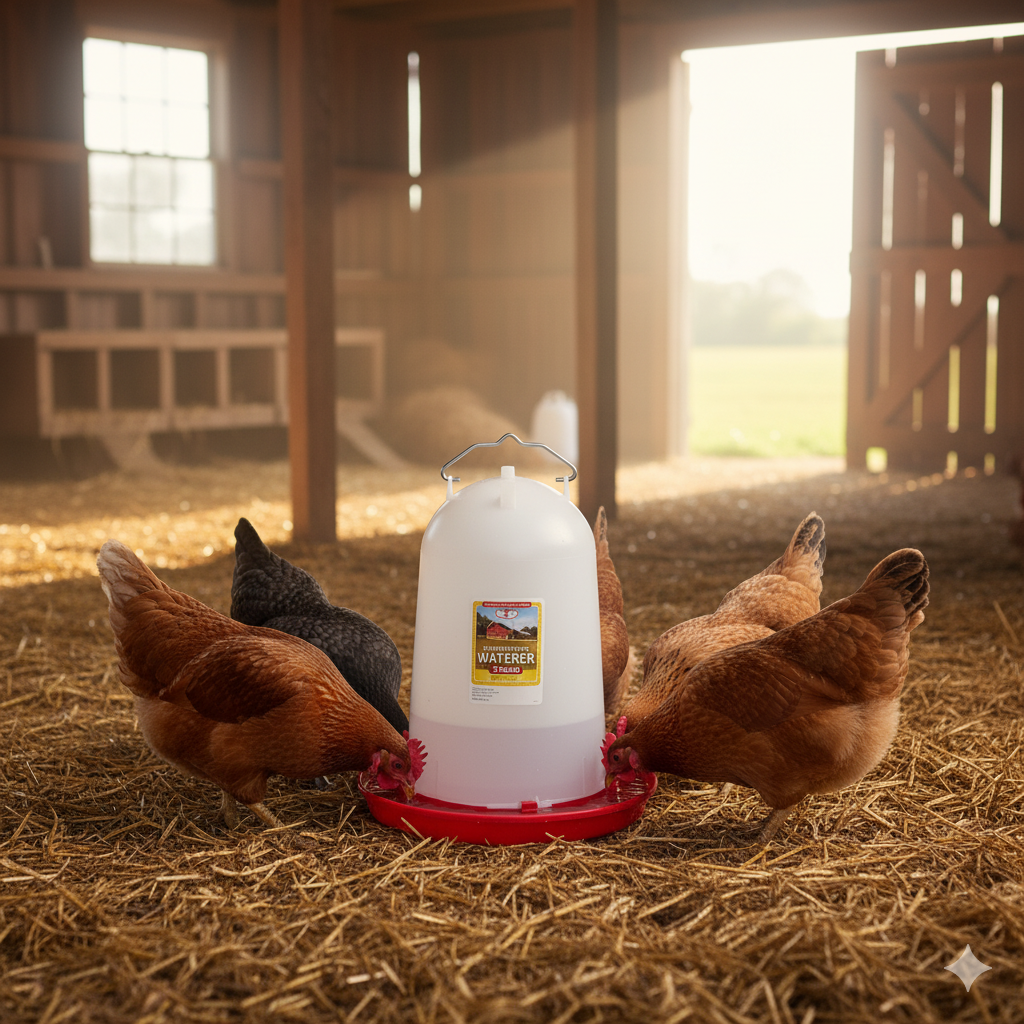 Little Giant 3 Gallon Poultry Drinker Gravity Fed Chicken Waterer Red Base