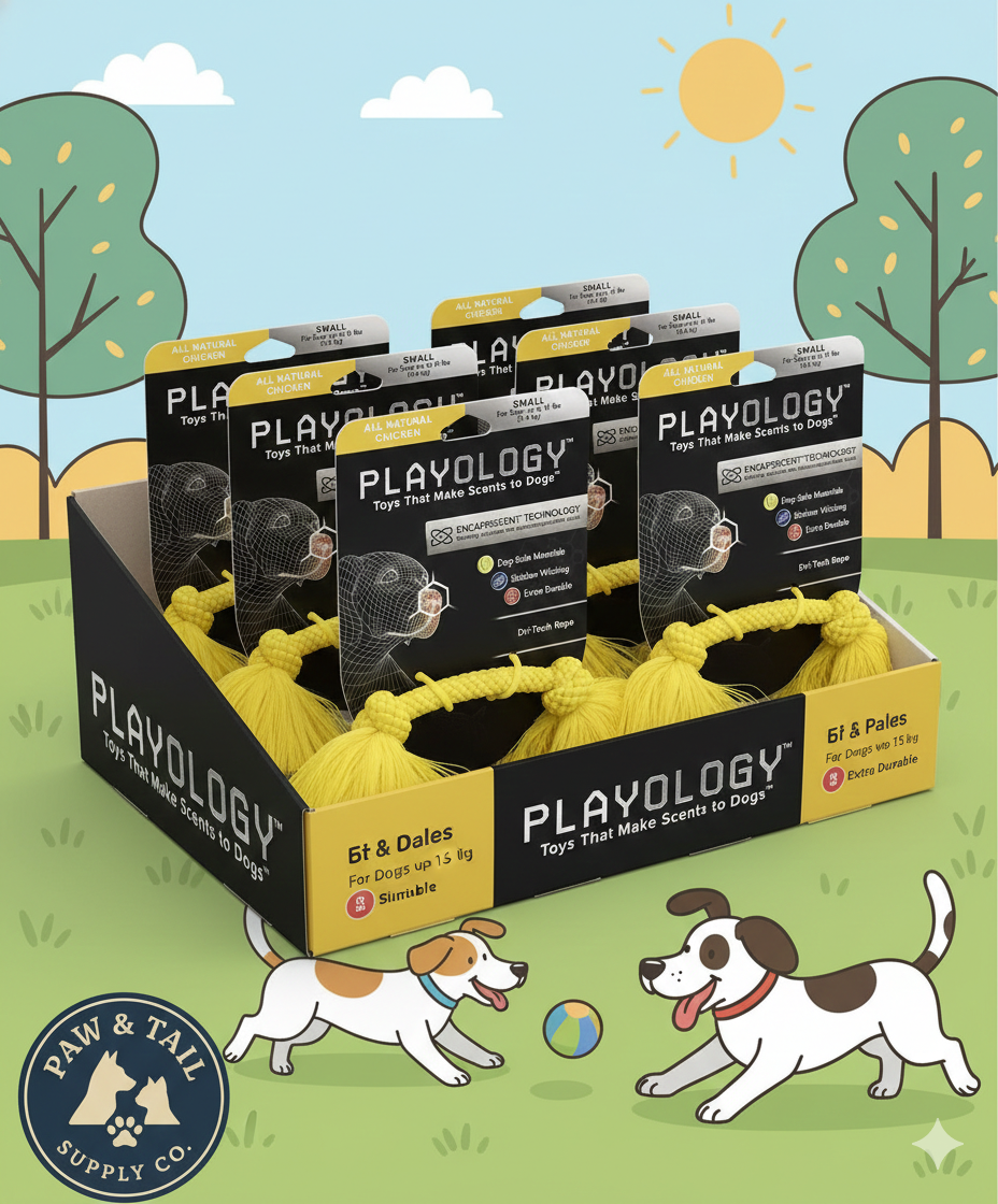 - Small Playology Dri-Tech rope dog toy (chicken scent)