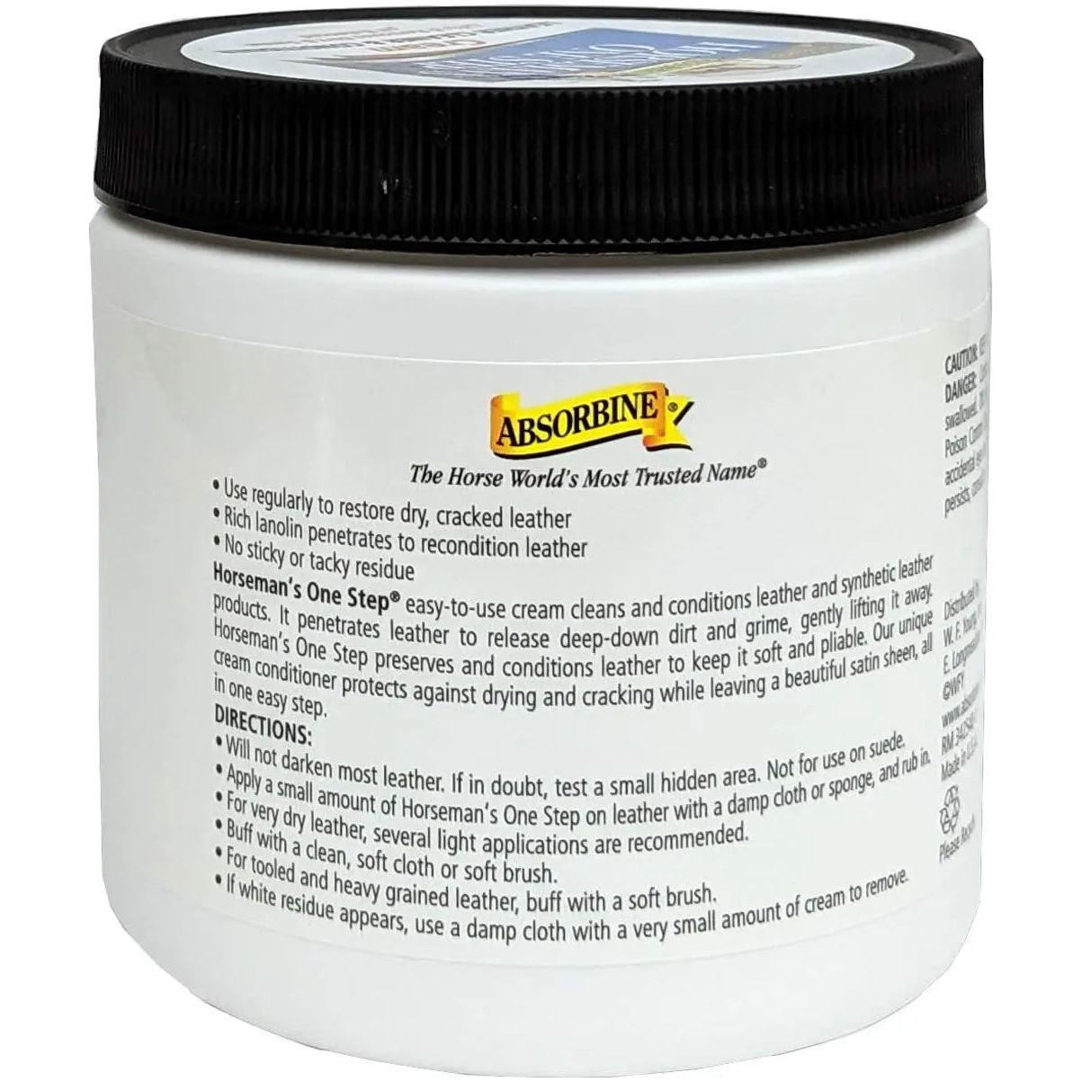 All-in-one leather-conditioning cream. An easy-to-use cream that delivers the convenience of all-in-one cleaning and conditioning, our Horseman’s One Step® leather conditioner cream helps keep your tack soft and pliable, protecting it against drying and cracking with a lanolin-based, pH-balanced formula. 15oz Jar.