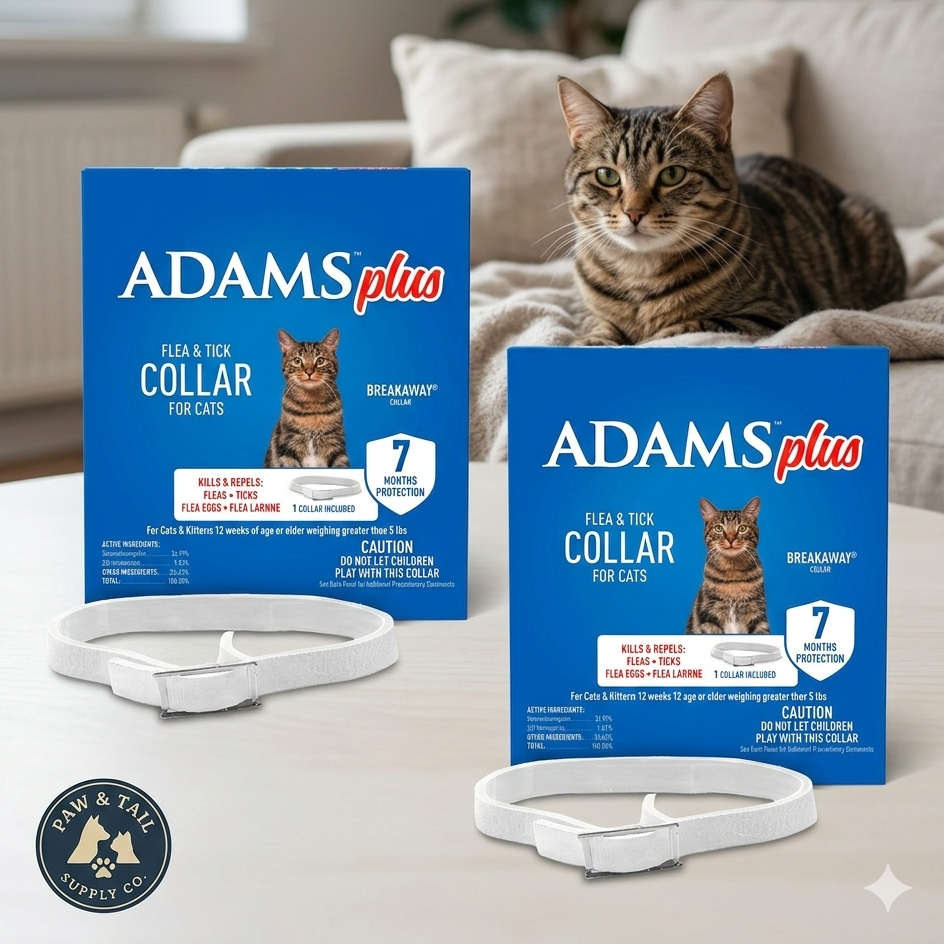 ADAMS Plus Flea & Tick Collar for Cats is a water-resistant collar that provides up to 7 months of long-lasting flea and tick prevention. Extended-release technology continuously delivers active ingredients to help control fleas, flea eggs, flea larvae, ticks, and deer ticks. Adjustable collar fits easily—buckle, adjust, and trim excess for comfort.