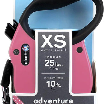 Alcott Adventure Retractable Reflective Belt Leash for Dogs, 10' Long, XS Pink