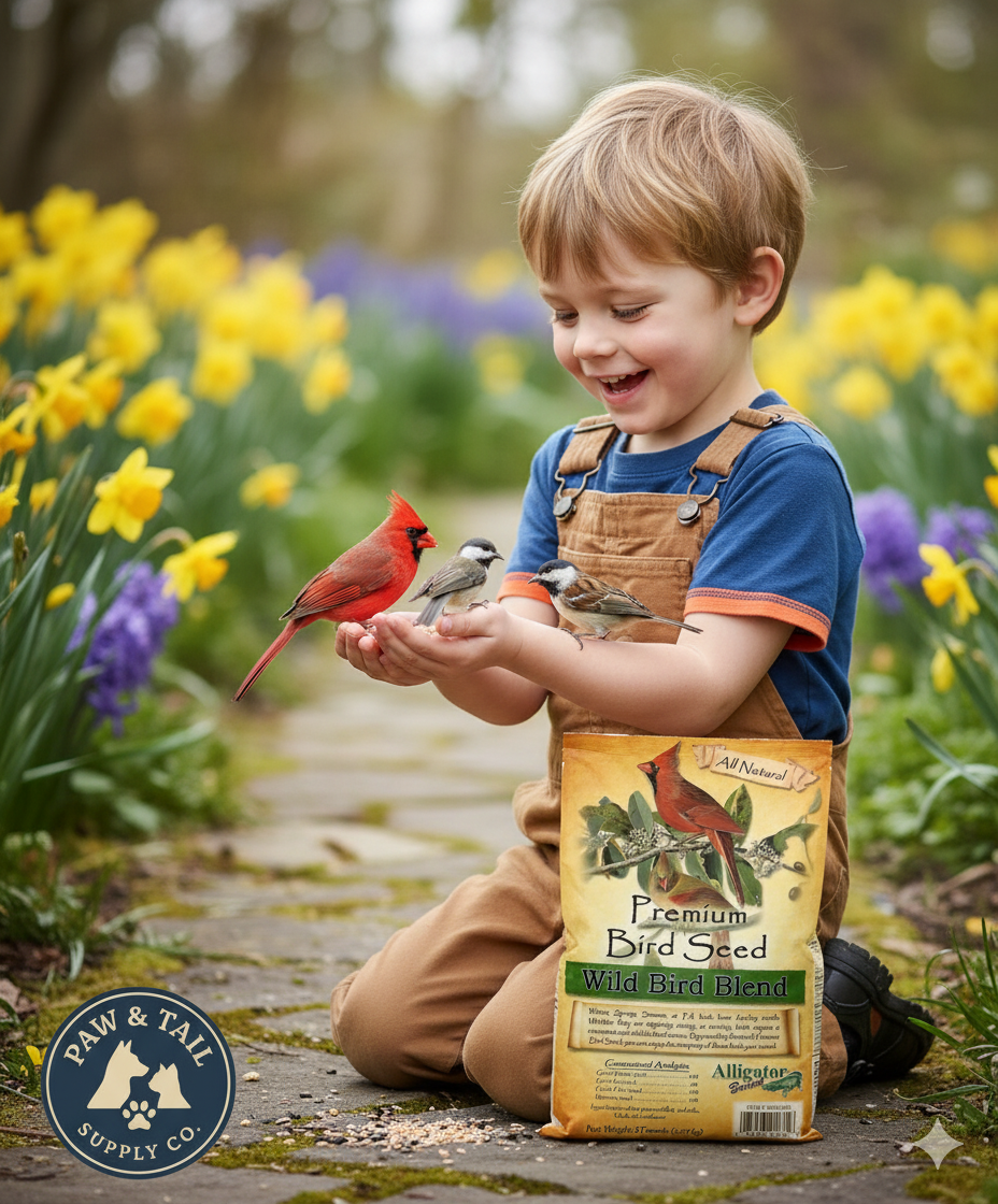Alligator Brand Premium Wild Bird Seed Blend 5 lb. All-natural, no-corn mix with white proso millet, red milo & black oil sunflower seeds. Great year-round feed for wild birds.