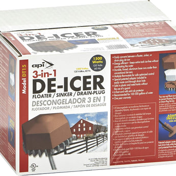 API 3-in-1 De-Icer 1500W Floating Sinking Drain Plug Stock Tank Heater 100–300gal