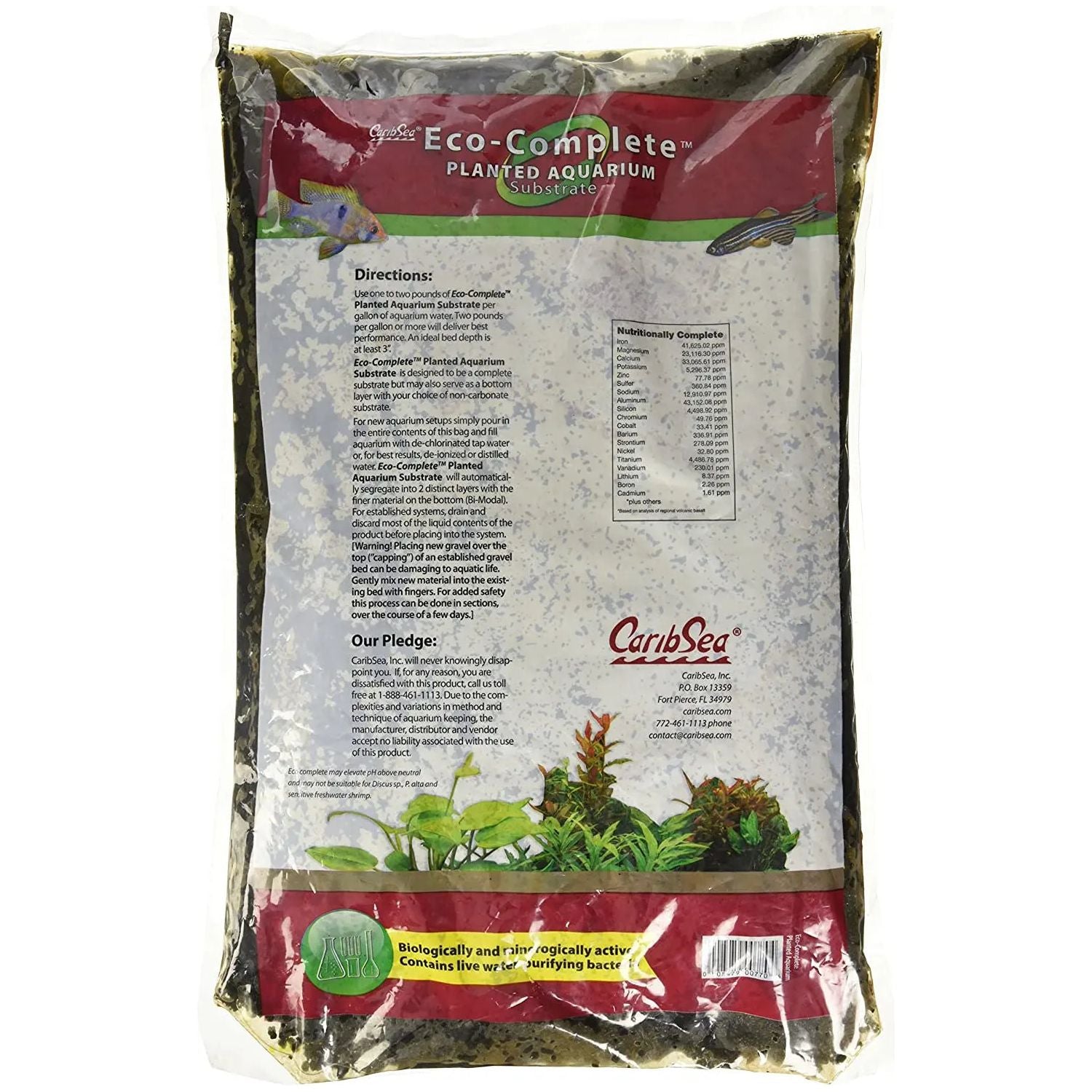 CaribSea Eco-Complete Planted Aquarium Substrate is a mineralogically and biologically complete substrate for planted aquariums that comes in live water that contains purifying bacteria.