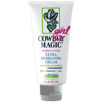 Now a product just for you from Cowboy Magic! Rosewater Ultra Hydrating cream hydrates to firm skin and help fight the appearance of wrinkles. Containing age defying properties makes this an ideal cream for the whole body. Cowgirl Magic is made with a light, clean and refreshing scent. Great for after a long day at the barn to provide soothing moisture to leave your skin soft. Unique formula that is a blend of apricot, coconut, avocado, sesame and olive oil that works to restore the skin to it's youthful suppleness without leaving a residue.