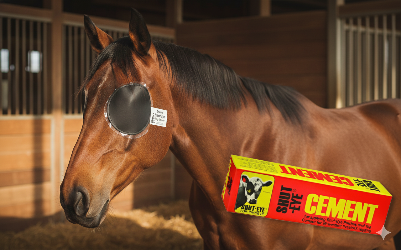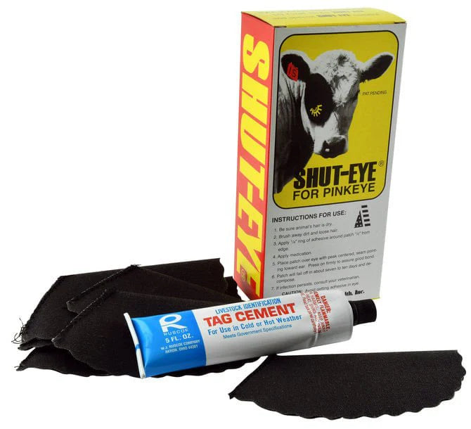Shut-Eye Cement for use when applying Shut-Eye Patches for pinkeye and all-weather livestock tagging.