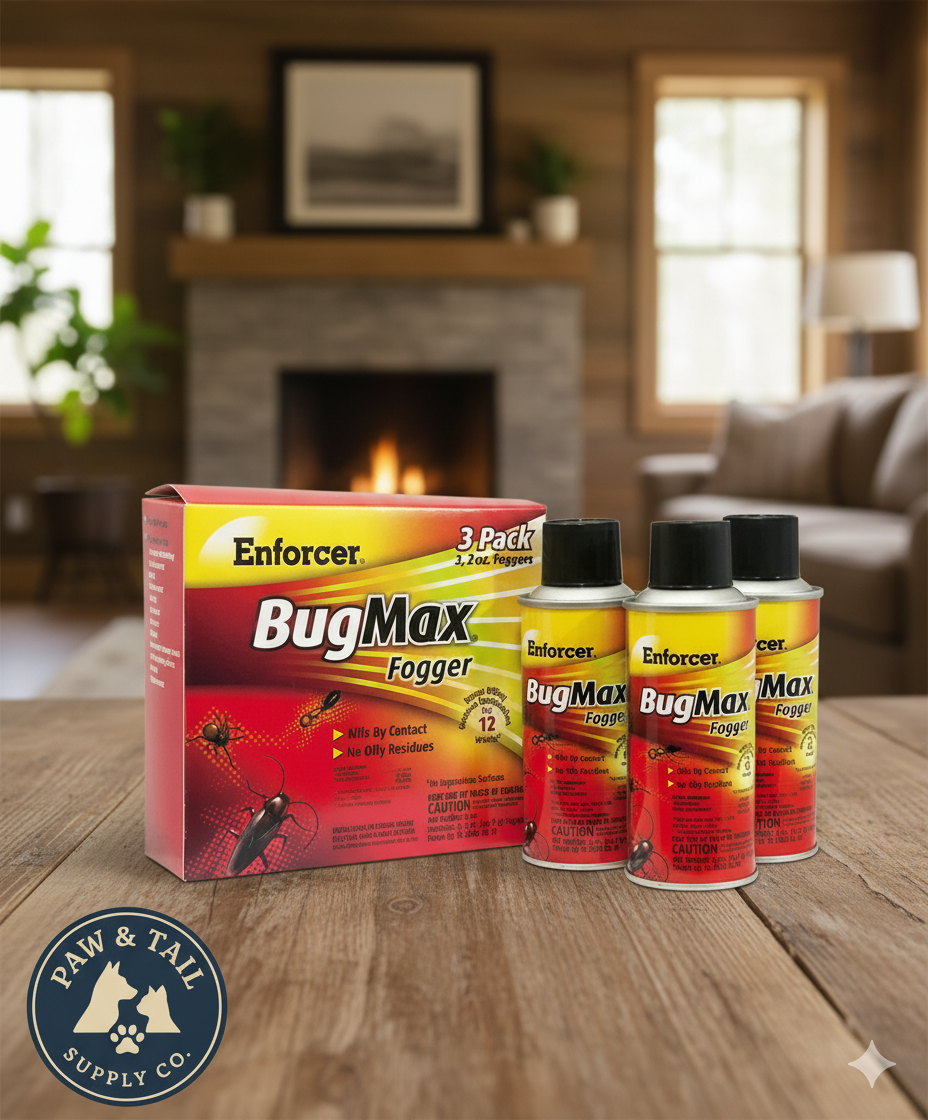 Enforcer 4 Hour Fogger 3 Pack (2 oz each) targets roaches, fleas, ticks & flies. Each can treats up to 2,000 cu ft. Odorless, non-staining, water-based formula with Tetramethrin & Sumithrin. Kills German cockroaches up to 12 weeks.