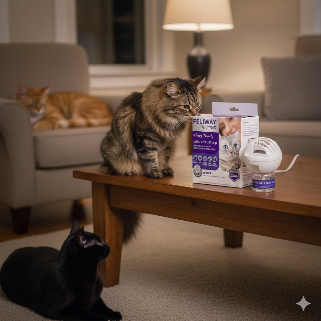 FELIWAY Optimum 30 Day Cat Calming Plug-In Diffuser 48ml. Drug-free pheromone helps reduce scratching, urine spraying, tension, fears & stress-related behaviors in cats and kittens. Starter kit includes diffuser & refill.