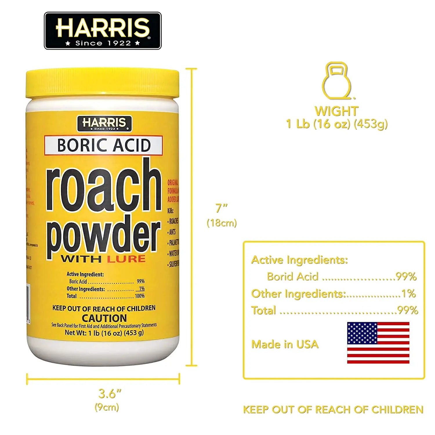 HARRIS Boric Acid Roach Killer Powder with Lure 16 oz.