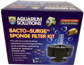 Bacto-Surge® Biological Action Filters are air-driven sponge filters (air pump not included) which offer superior mechanical and biological filtration of your aquarium water. The highly porous sponge contains extreme surface area and thousands of microscopic pores where aerobic bacteria, hydrated with oxygenated water, can grow and flourish.