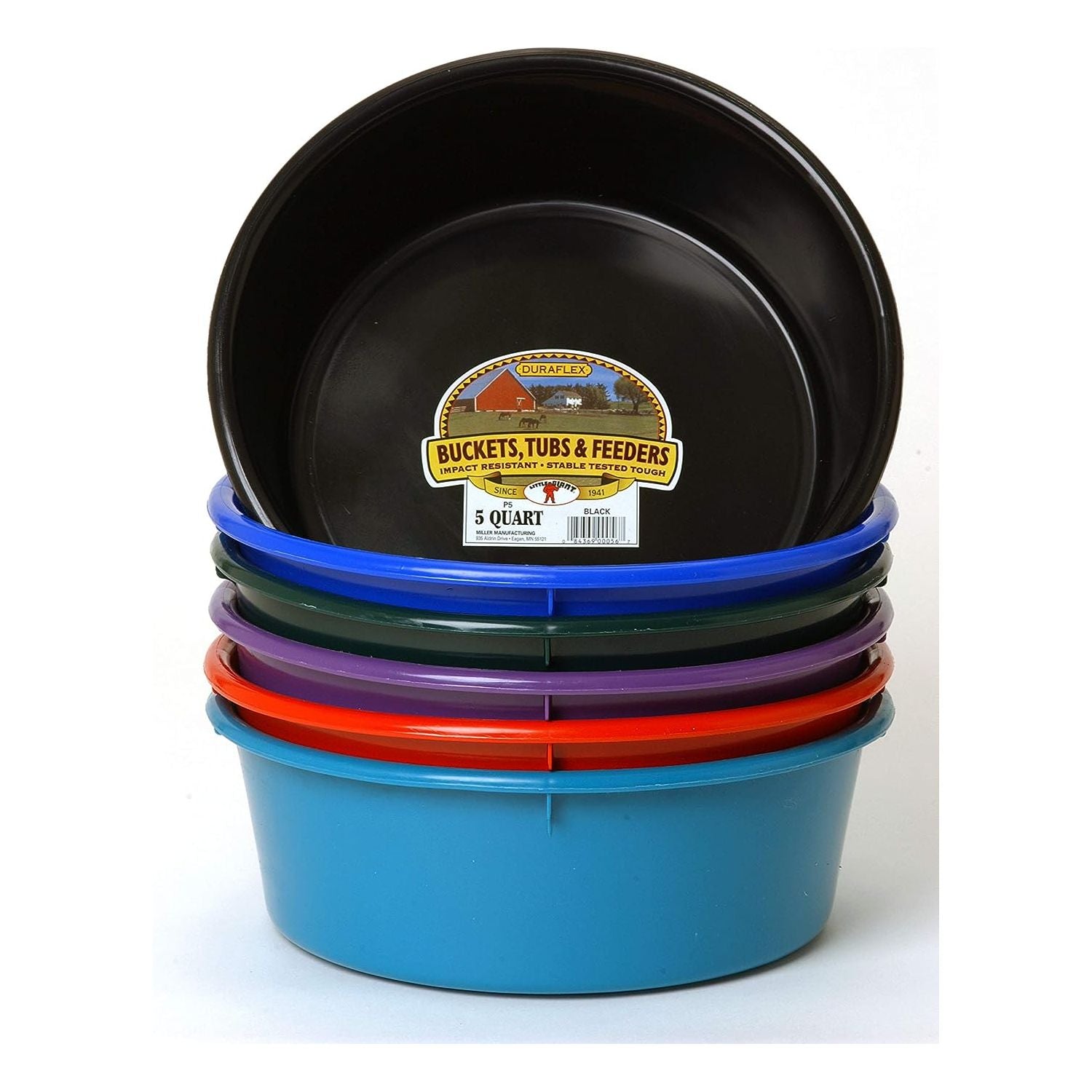 Little Giant Plastic Utility Pan Livestock Feeding Bucket 5 Quart, Black