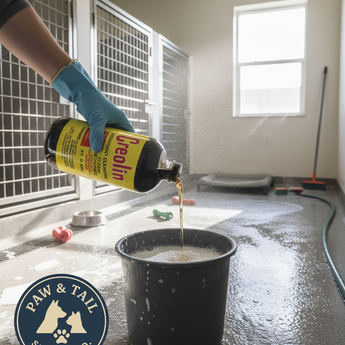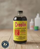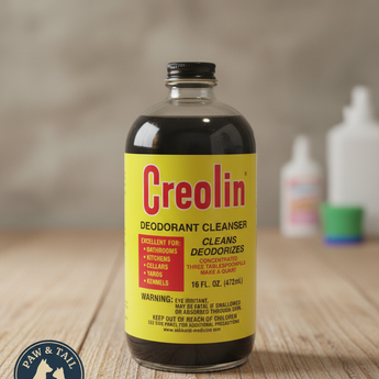 A concentrated coal tar based cleanser for use in animal quarters, kennels, & for general household use. Creolin kills orders on most environmental surfaces As well as bacteria, staph, mites, & insects.