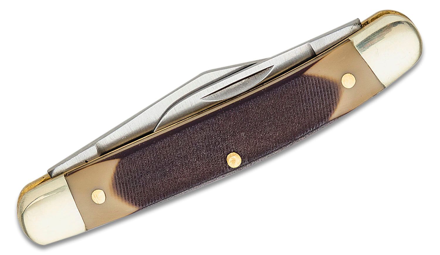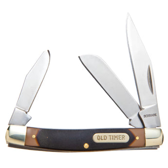 This traditional slipjoint features two blades inside of a sawcut Delrin handle. The 1.9" clip point and 1.3" pen blade feature a satin finish and are made of stainless steel. The Delrin handle is comfortable in the hand and the sawcut pattern provides excellent grip in any condition. This knife continues the traditional style of two-bladed slipjoints and carries on the quality that Old Timer is known for.