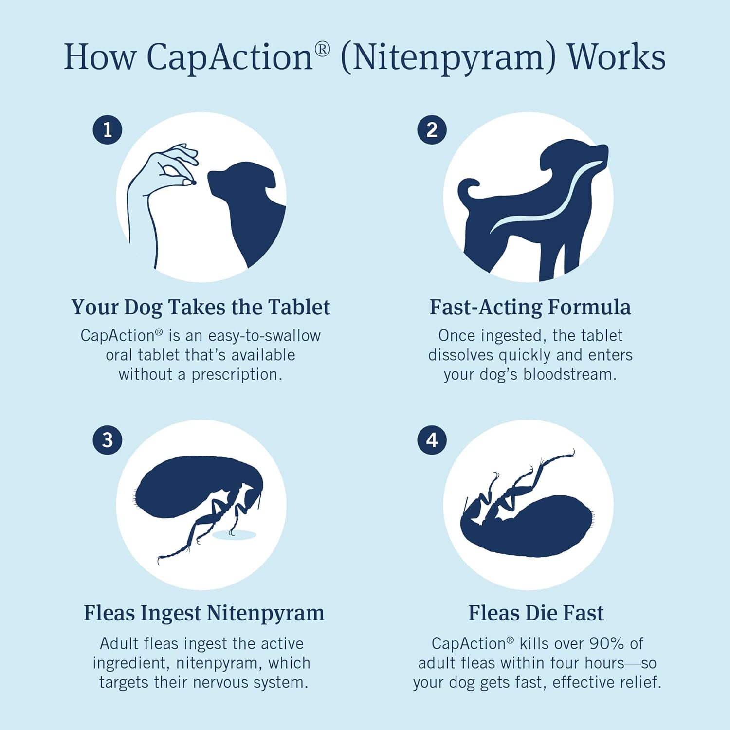 PetArmor CAPACTION fast-acting oral flea tablets for dogs 2-25 lbs. Kills adult fleas in 30 minutes. Contains nitenpyram, same as CAPSTAR. No prescription needed. 6 doses, can be given daily as needed. Vet-quality flea treatment.