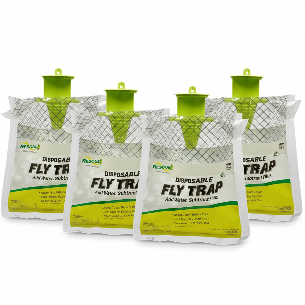 RESCUE! Disposable Fly Trap Outdoor Catches 20,000 Flies No Poison 4 Traps