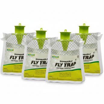 RESCUE! Disposable Fly Trap controls outdoor fly populations at the source with irresistible bait. This high-quality resin trap catches up to 20,000 flies. Simply add water, hang near trash bins, animal pens, or dog runs. Flies enter but cannot escape and drown. No poisons or killing agents. Easy no-mess disposal when full.