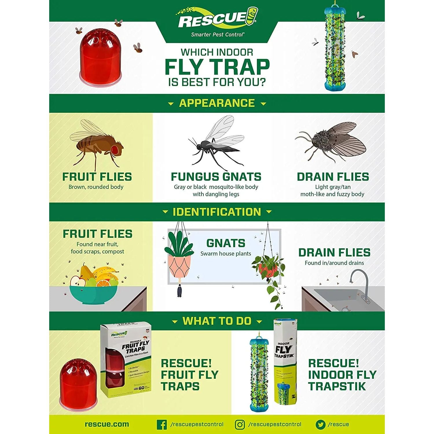 RESCUE!® Fruit Fly Trap Refill combined with RESCUE!® Fruit Fly Traps catches fruit flies faster than competing traps. By studying fruit flies in our insect lab, we determined the exact shade of red that will attract fruit flies. This refill includes a 30-day supply.