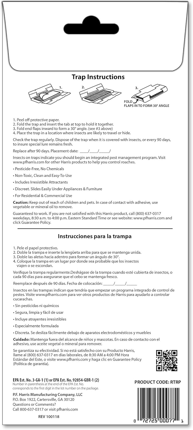 Traps American cockroaches, german cockroaches, waterbugs, and palmetto bugs.
