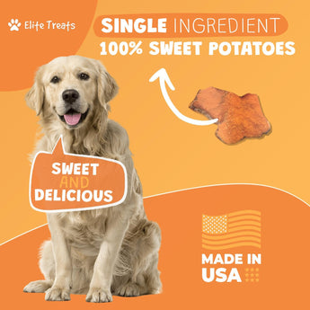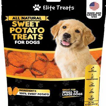 Elite Treats Sweet Potato Dog Treats USA Made 100% Sweet Potato Natural Grain-Free 6 oz. Bag