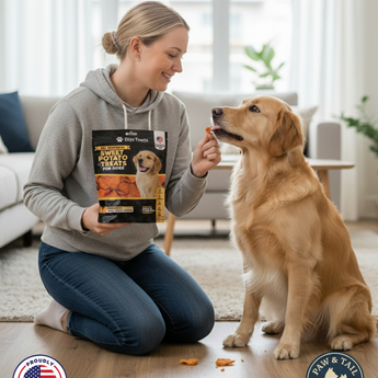 Indulge your furry friend with our all-natural Sweet Potato Treats, proudly made and grown in the USA. We use only 100% sweet potatoes with no additives, fillers, or grains, ensuring a wholesome and healthy snack for your dog. These treats are great for relieving constipation.