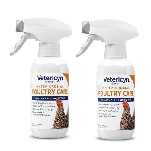 Care for your flock with Vetericyn Plus Poultry Care Advanced Cleanser. This gentle spray helps clean cuts, scratches, abrasions, and pecking sores on chickens and other poultry.