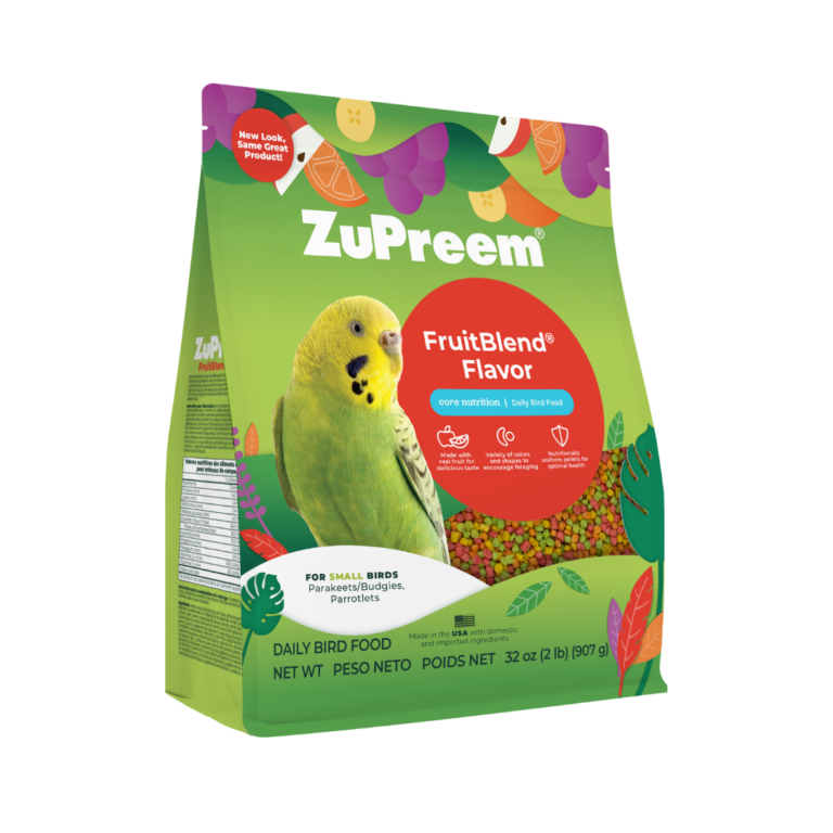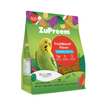ZuPreem FruitBlend provides complete and balanced nutrition for small birds in every colorful bite. This 2 lb formula features natural fruit flavors and is fortified with essential vitamins and minerals to support healthy feathers, active minds, and happy digestion for the longest, healthiest life possible.
